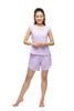 Bộ đồ bao gồm quần đùi có túi và tay cộc, kết hợp với túi con, tạo nên sự tiện ích và phong cách cho người mặc.
