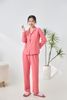 Bộ đồ mặc nhà nữ tay dài chất liệu thun dệt kim cao cấp mang đến cảm giác thoải mái, co giãn nhẹ và thoáng khí, giúp người mặc dễ chịu trong mọi hoạt động hằng ngày. Thiết kế cổ bẻ, cài nút phía trước mang nét thanh lịch, gọn gàng và phù hợp với nhiều độ tuổi.